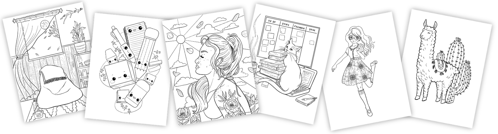 Digital downloads of beautiful hand drawn coloring pages for you to enjoy coloring again and again.